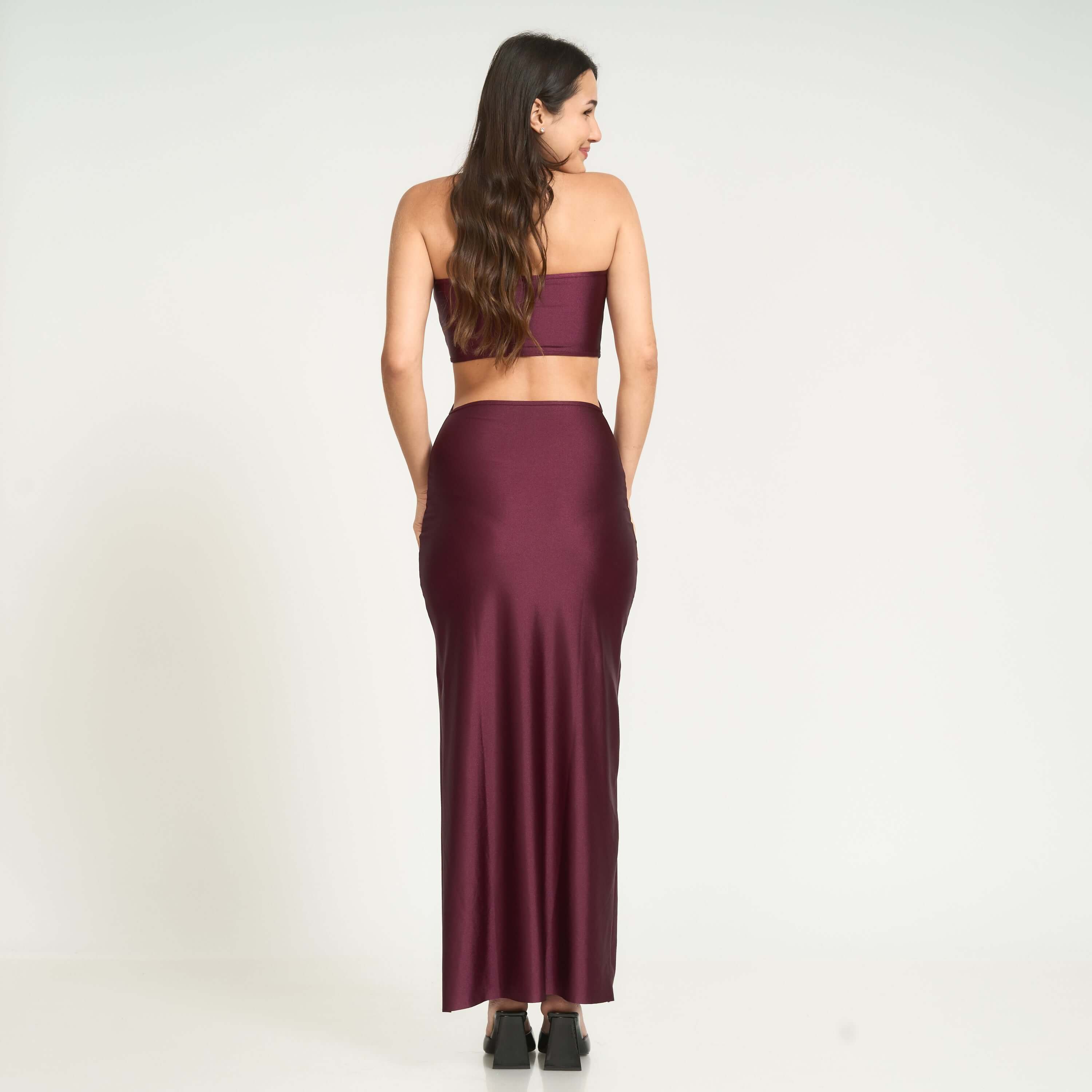 Meet the Isa Dress, your new go-to for effortless, versatile glamour. Designed in a rich maroon shade, this strapless maxi adapts to you and your mood. Wear it with the cutout in the back for a sleek, minimalist look—or flip it and show the cutout in front for a bold, sexy twist. Two dresses in one.