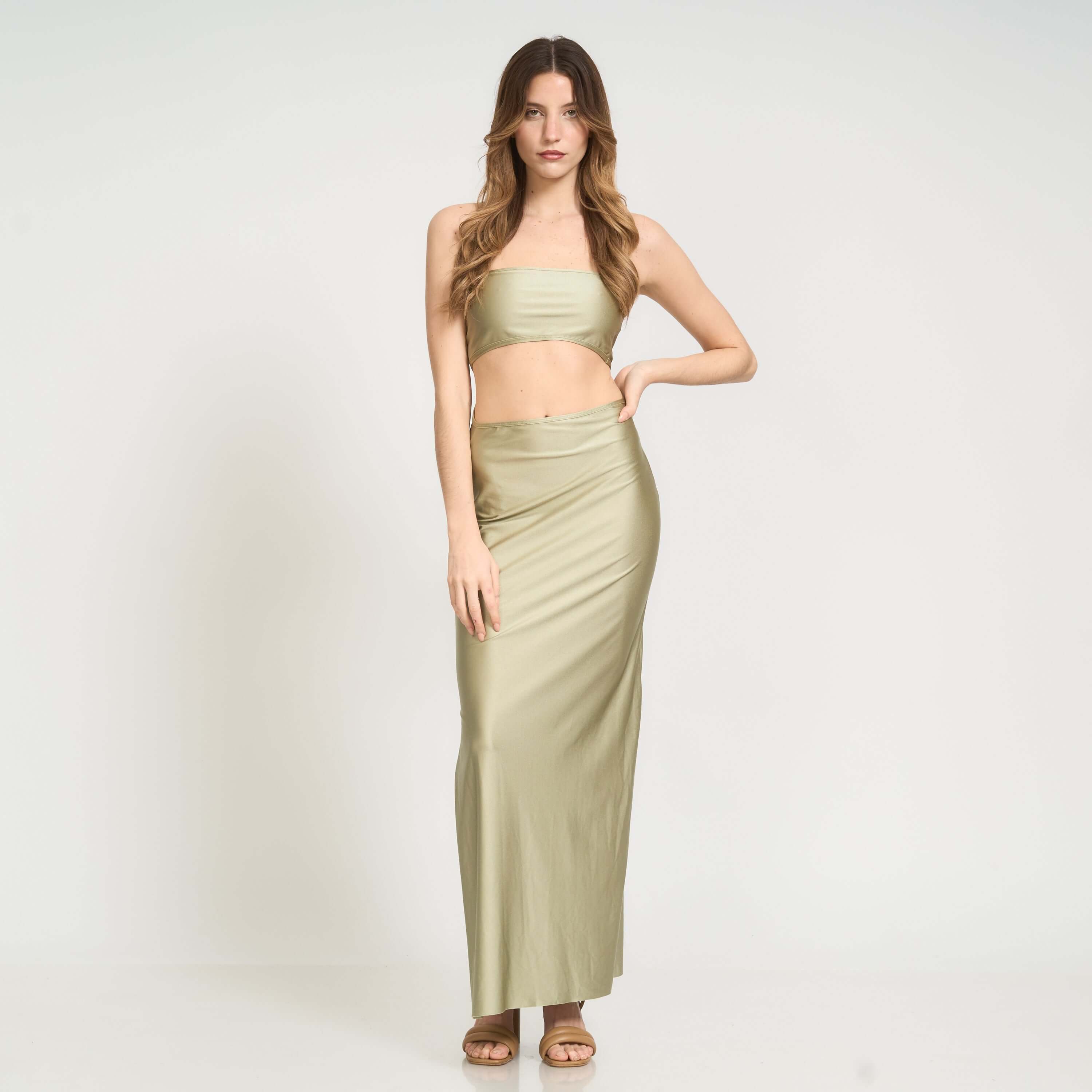Meet the Isa Dress, your new go-to for effortless, versatile glamour. Designed in a pastel pistacchio-green shade, this strapless maxi adapts to you and your mood. Wear it with the cutout in the back for a sleek, minimalist look—or flip it and show the cutout in front for a bold, sexy twist. Two dresses in one.