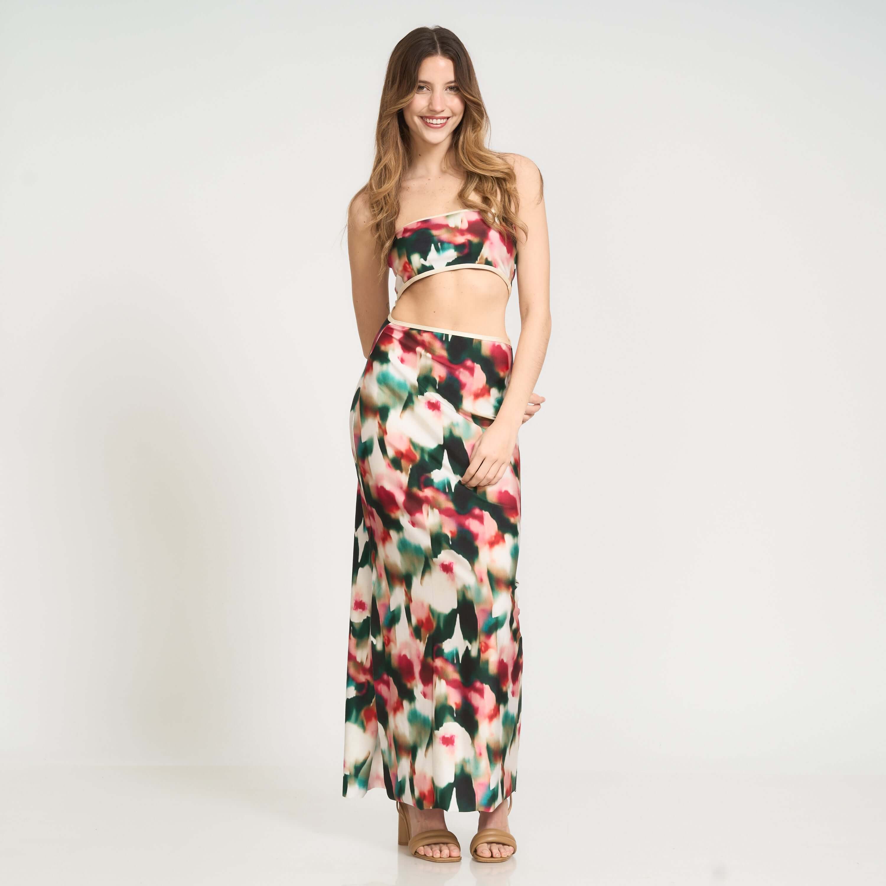 Meet the Isa Dress, your new go-to for effortless, versatile glamour. Designed in our Venus print with contrast trim in white, this strapless maxi adapts to you and your mood. Wear it with the cutout in the back for a sleek, minimalist look—or flip it and show the cutout in front for a bold, sexy twist. Two dresses in one.
