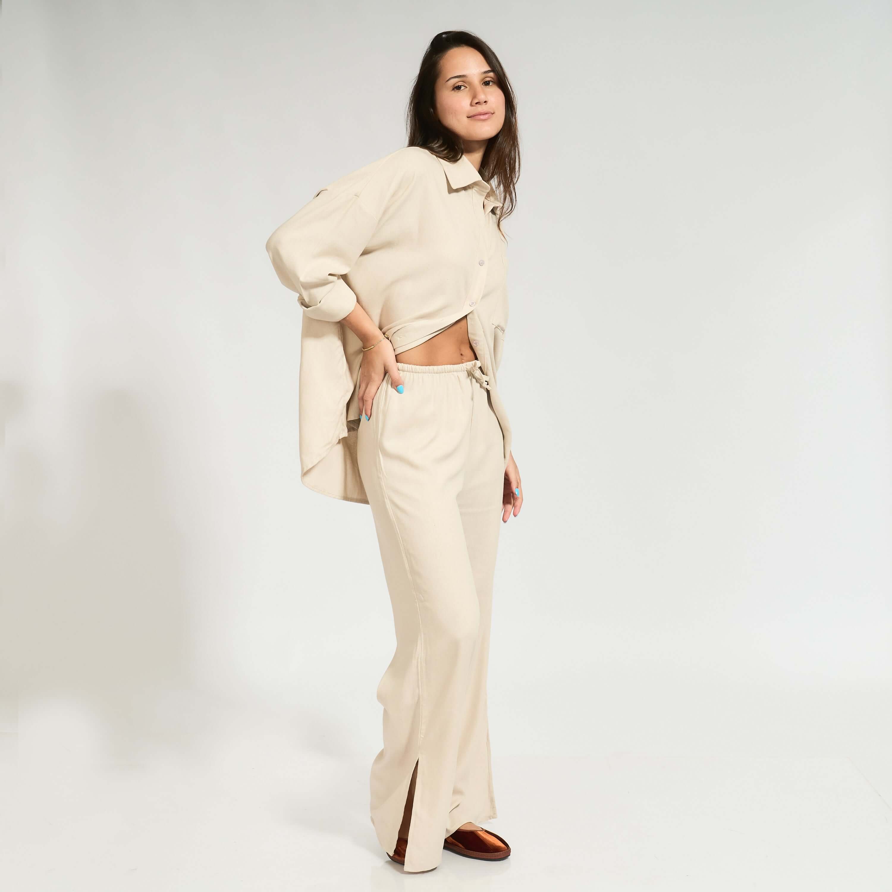 Soleil Pants by Half Naked Swim: Crafted from 100% linen, these lightweight and breathable pants are your summer essential. Perfect for warm weather, they transition effortlessly from beachwear to a chic evening look. Pair with our Soleil Top for a coordinated outfit. Made in Perú.