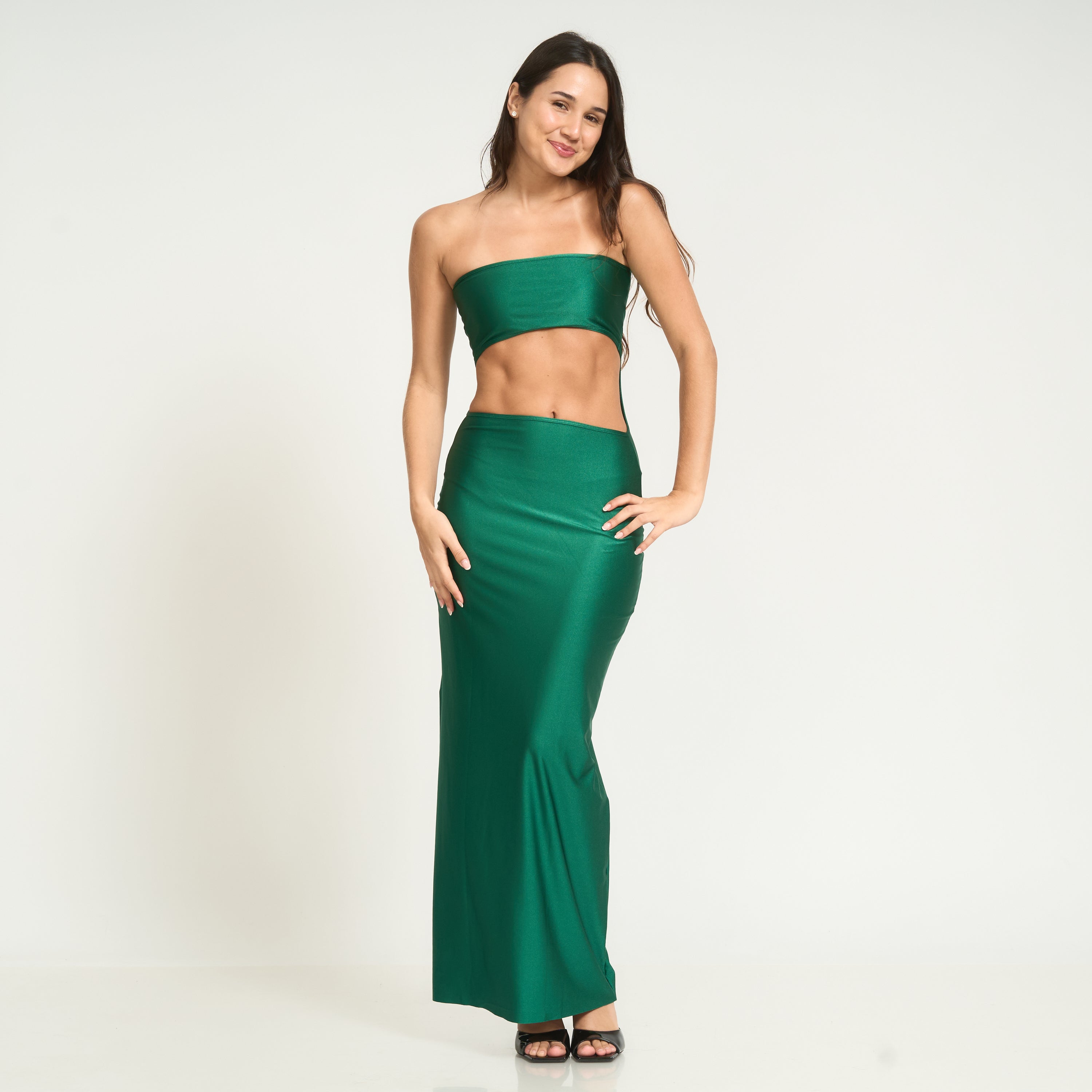 Meet the Isa Dress, your new go-to for effortless, versatile glamour. Designed in a stunning bottle-green shade, this strapless maxi adapts to you and your mood. Wear it with the cutout in the back for a sleek, minimalist look—or flip it and show the cutout in front for a bold, sexy twist. Two dresses in one.